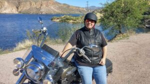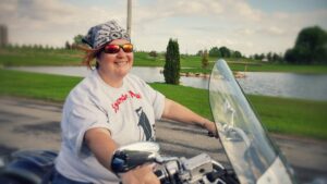 Soon after learning how to ride from my husband, I enrolled into a safety course and got my endorsement. I loved it at first, but I was nervous, always nervous. The least bit of gravel and my entire behind would be eating my seat! HOLD ON FOR DEAR LIFE! because I knew that there were only 2 patches of tire on the ground and if one hit something it didn’t like, I’d be sliding or flying and I couldn’t get that out of my head.