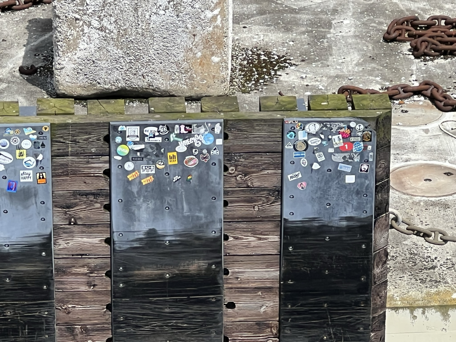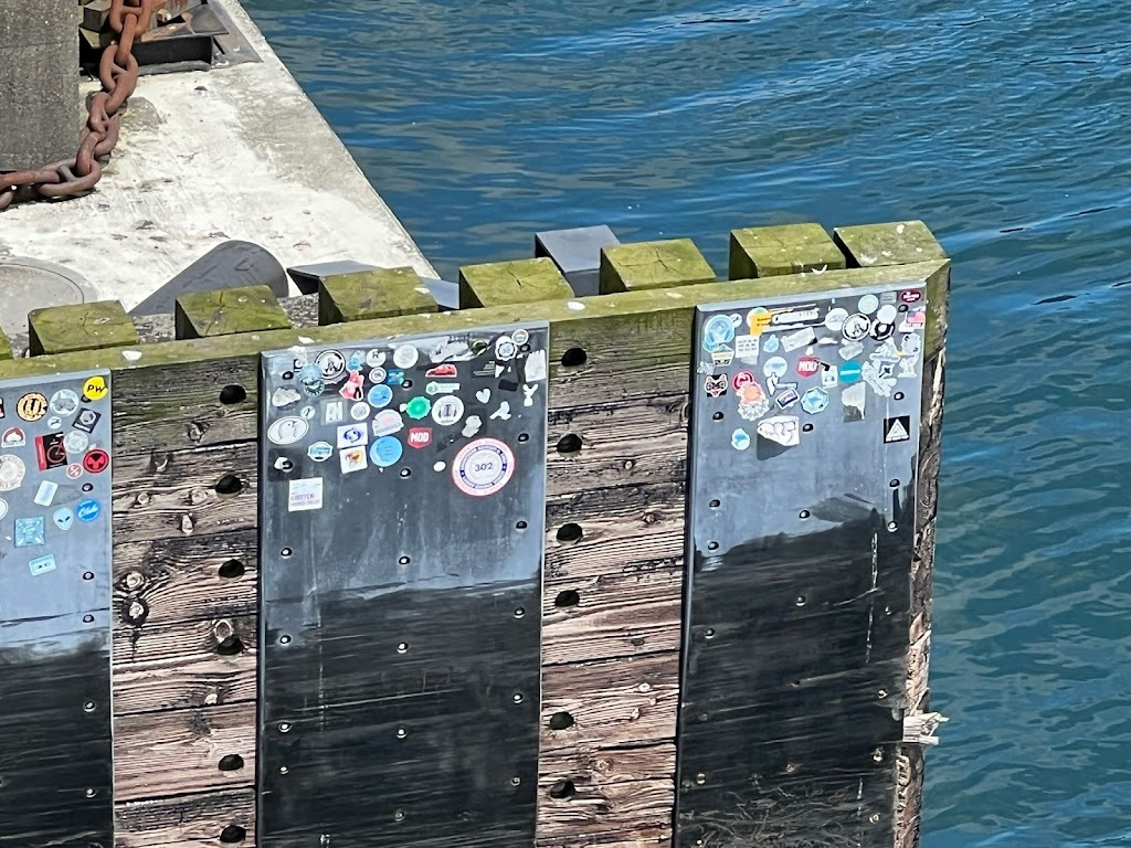 Loading and unloading the ferry was fine. Not really much of an adventure. Much like boarding and un-boarding a plane. you kind of just get herded along the way. Just follow the flow of people lol. Coming up to the dock there was floating concrete pads the managed to have stickers all over it. Not sure why, but I found that interesting.